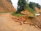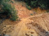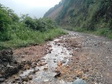 爬了些緩緩的坡後,在我眼前出現的是一段泥土石子參雜著水流的路面,我有些傻眼,但看著googlemap確實是這條路沒錯。那時想應是前幾天大雨造成的坍方,過了這段應就會恢復為柏油路了。且我已爬了一段上坡了,也實在不想在這又往回走,就往前走吧我想。