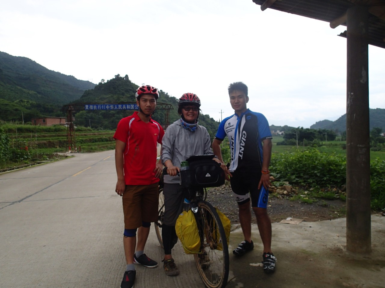 下午兩點半,我在爬完第二個山頭,下坡後不久,遇到了早上的車友,他們在中午時早已到了九峰鎮。在那等了半個小時,見我還不到,就先開飯了。唉,我這負重幾十公斤的車,加上一點都不訓驗有素的人,怎麼趕得上啊!
