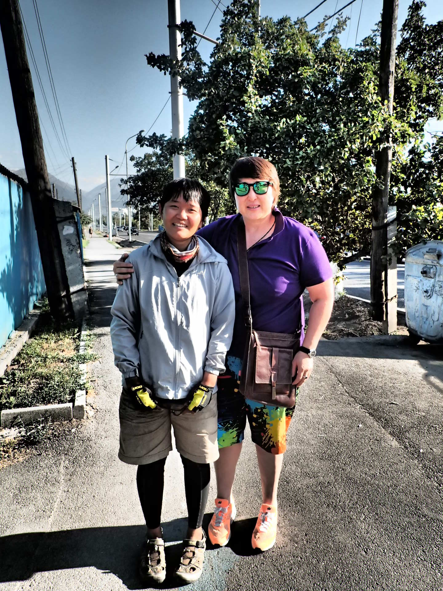 進阿拉木圖的這段路坑坑洞洞的,又尤其我是走在馬路的邊邊,那路況更是糟糕。因為是進入市區,車流量大、這裡人開車速度又是飛快,好幾次都被直接逼到馬路旁的沙子路上,因為不是登山胎,在沙子路上很容易打滑,騎得戰戰兢兢。