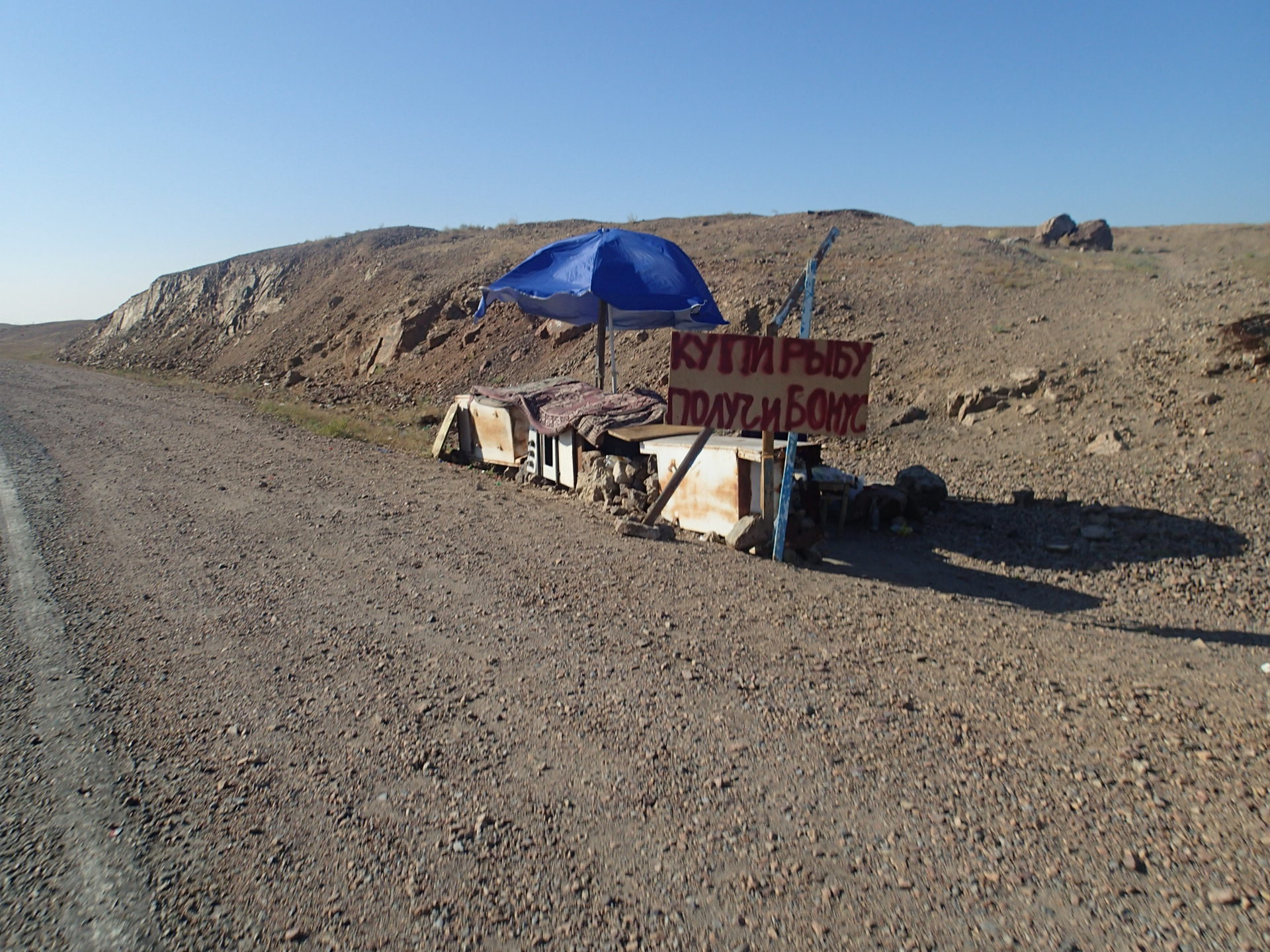 早上騎行時,有四輛車在我前面停了下來,知道他們是關心的意思,但因為聽不懂,只能跟他們說是要往阿斯坦那,莫斯科騎去。其中一位油灌車司機,也沒多說什麼,直接倒了杯自製的不知道是什麼果實製成的果汁給我,酸酸甜甜,重點是,它是冰的!太好喝了,又要了一杯。司機很帥氣,沒多說話,對我比了個大姆指,又駕車而去。