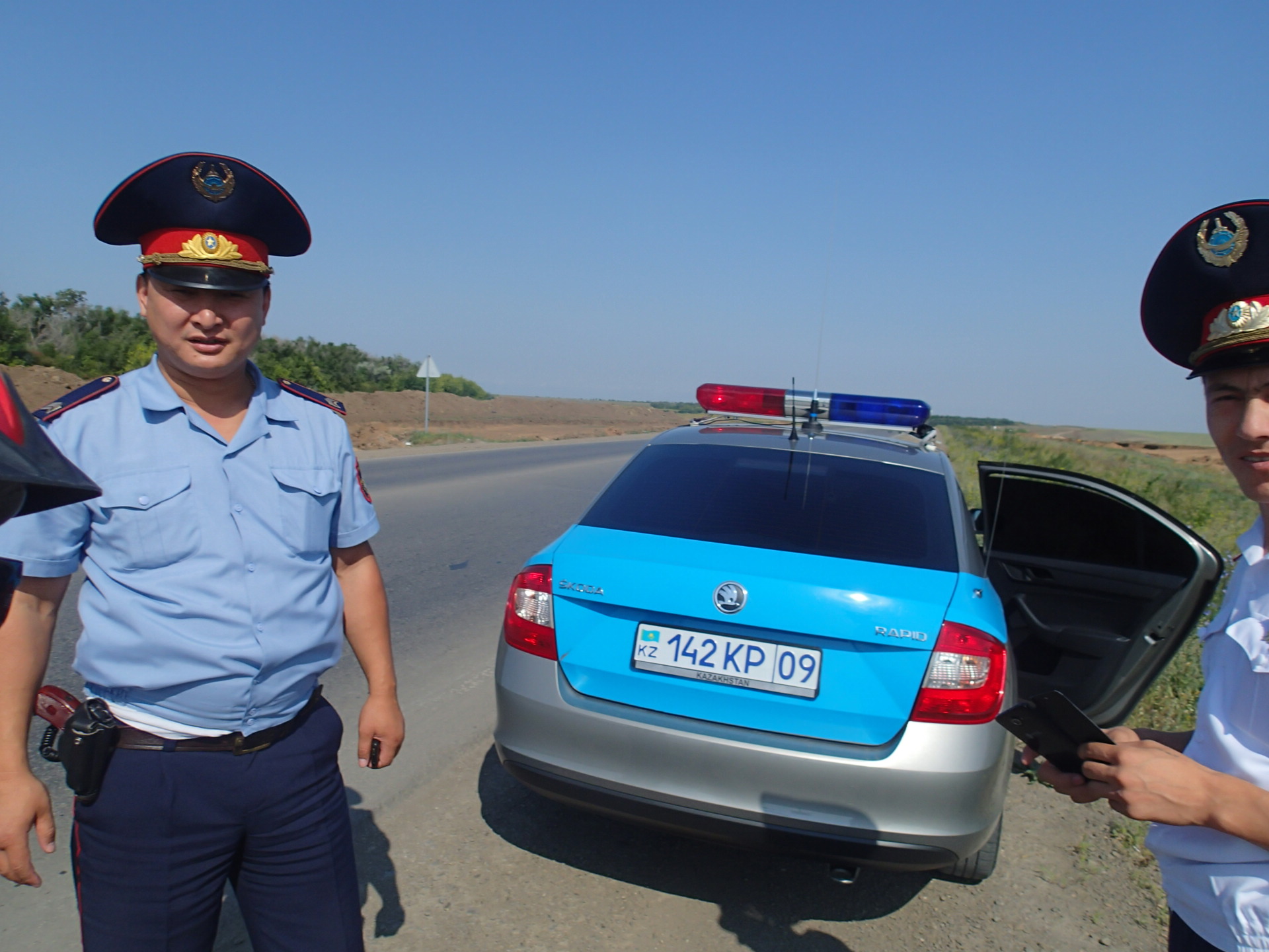 今天早上和下午在騎行時都被警察攔了下來,好像穿著警察制服就能對任何人問話!他們就在距離我二十公尺的地方停下,當我接近時,就比著來來來過來這裡的手勢。其實也就是好奇,問話內容跟一般人無異,聽到我從中國騎來,滿臉詫異,一直不相信!不過雞同鴨講了幾句後,就變成了要找我拍照。
