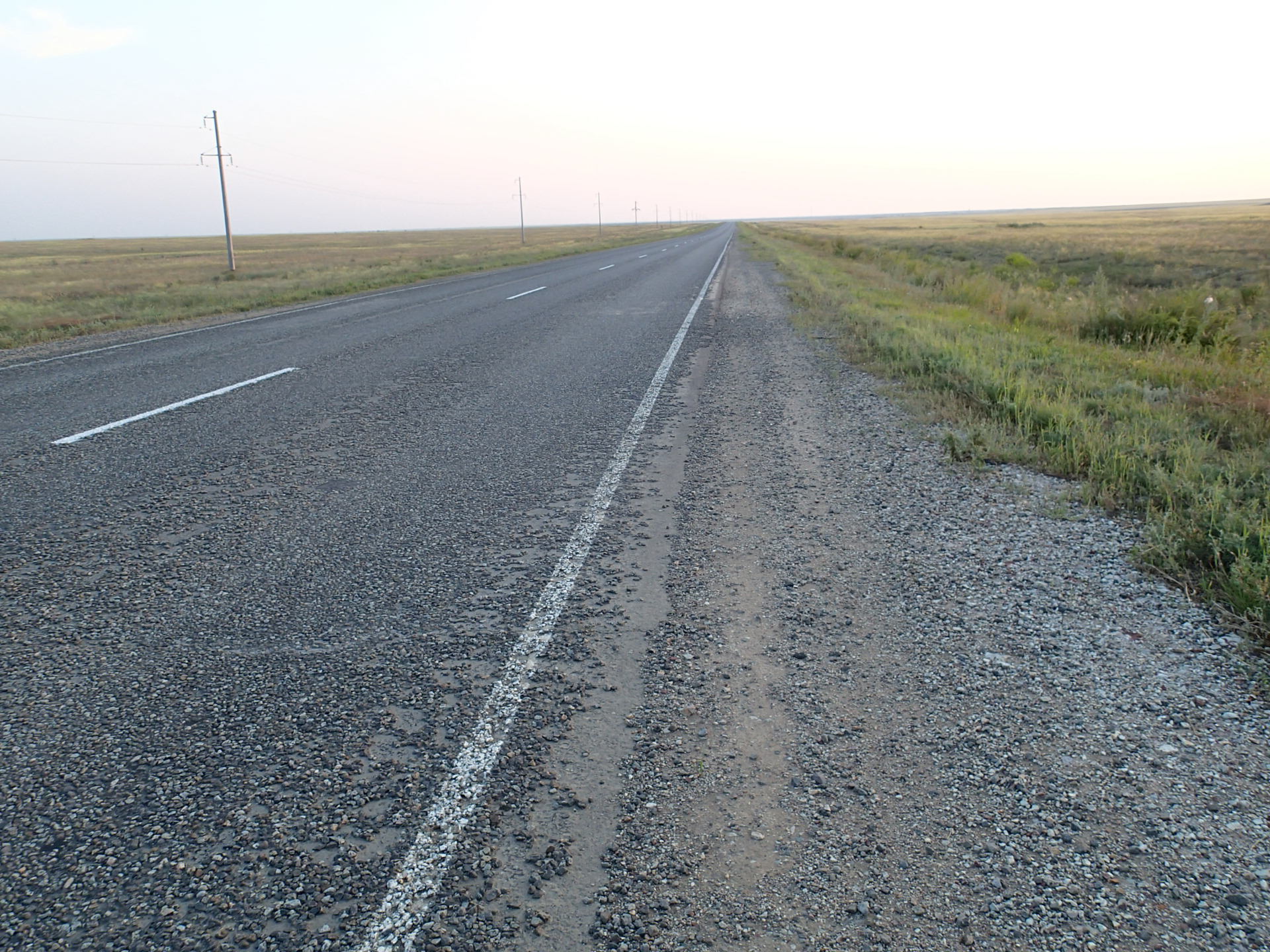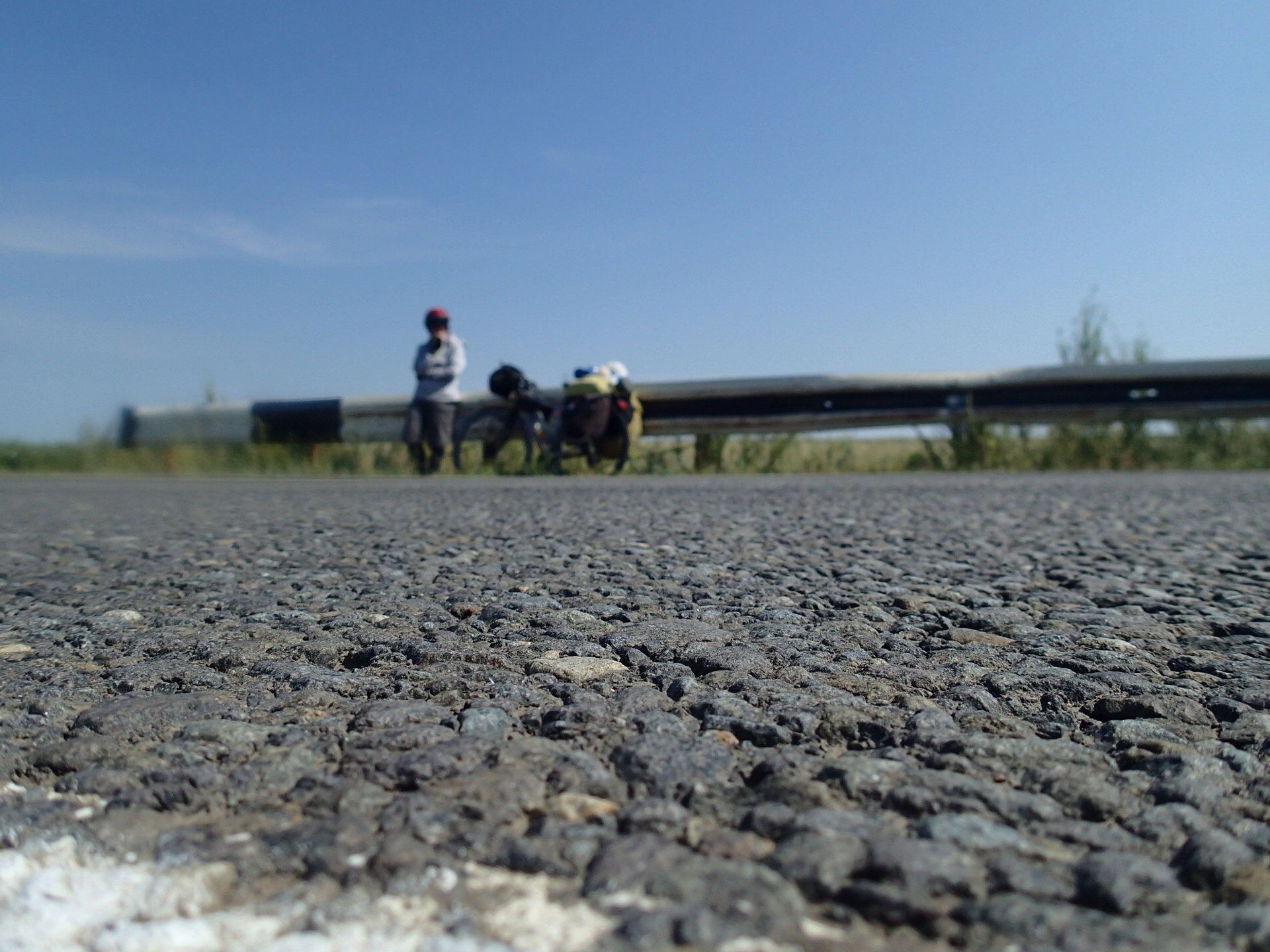 吃完飯後,不知那來的力氣,速度一直維持在二十。快七點時,開始留心可以搭帳篷的地方,但一直找不到合適的。眼看天快黑了,遠遠望去,前方有幾幢房子,是個小村莊,那麼晚了不想經過村莊,不想在有人住的地方搭帳篷。索性就直接把單車遷離馬路,又到了和馬路有高低落差的排水洞旁,不過這次的高低落差不大,馬路上的司機若有留心、或仔細看,就會看到有人在馬路右下方搭帳棚。不過,也不管了,反正快天黑了,天黑就是最好的遮蔽。