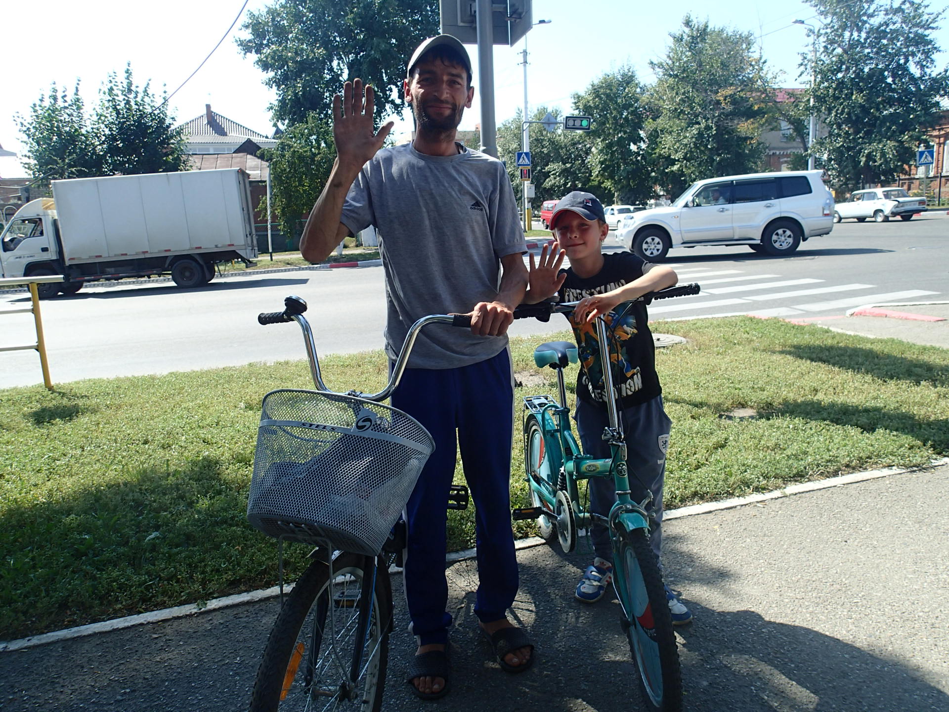 在順風的幫助下,下午兩點就到了Kostanay,是進入俄羅斯前最後一個大城市。即便俄羅斯前正在昨天就生效了,且只有二十七天,趕路壓力如影隨形。還是決定今天就在這裡休息,自從進到哈薩克後就未曾有過個悠閒的休息日,近天至少能閒閒的過個下午。還未進到市區便問路人,哪裡有免費Wifi,他叫我進市區,沒想到再往前走個幾步、還沒進到市區,就連上了免費Wifi。想想上一次用網路是在阿拉木圖,已經是十七天前。連上網後,知道了前幾天在Astana遇到的Carson原來也在Kostanay,不過他已經準備要離開了。感謝他提供我昨天他在Kostanay住的旅館、還貼心地附上地圖:)後來查了一下這果然是這地方最實惠的旅館了,今晚就決定住這了。在我站在人行道用wifi用了快一小時的期間,除了遇到一對主動和我搭話的可愛父子外,還遇到了個老伯伯,他看到我說沒幾句話,便搓搓大拇指和食指,示意著我能不能給他點錢,我說我沒有,想打發他,他又說了幾句話,我一直聳聳肩說我聽不懂,然後他又指了指他的臉頰要我親他,我裝傻,然後不理他了。對於遇到這種莫名其妙、想吃豆腐的事,我已漸漸沒什麼情緒了。