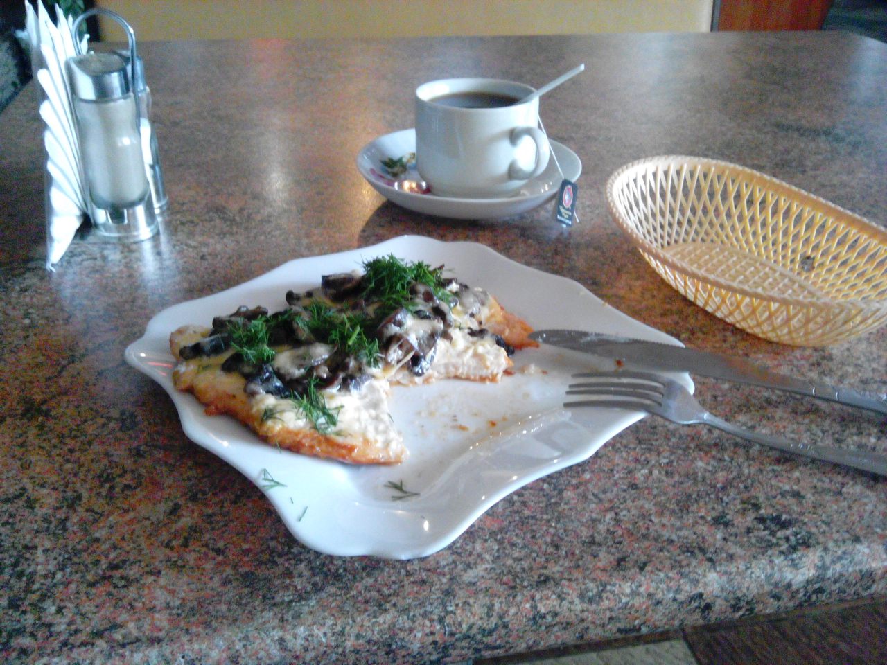 四點多餓了,想說來試試在俄羅斯的第一次餐廳經驗吧!進了餐廳,看了桌上的菜單,都是些一兩百塊的價位,心想這也太便宜了,不會只是飲料吧?過了幾分鐘我自覺意識到我這已經是在俄羅斯了,我的腦袋裡還是哈薩克Tenge的思考方式啊!當然會覺得便宜。