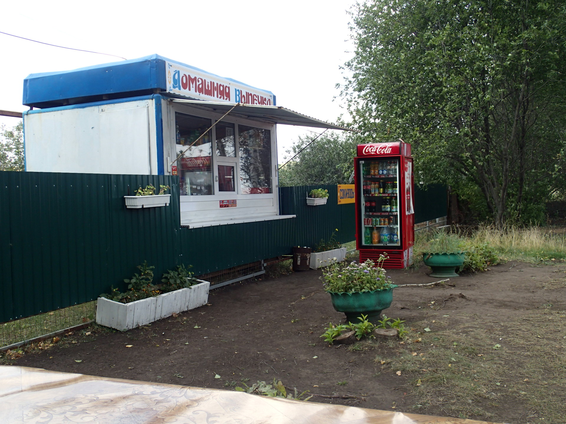 五點多在餐館裡吃了些東西後,向前騎沒多久,又看到一家小商店,不知道前面會不會又想今天早上一樣,四、五十公里都沒商店,還是下去買些存糧吧!這個小商店後面是住家,這裡面其實沒有人,要按櫥窗旁的電鈴,才會有人從後面的住家走過來。櫥窗內除了飲料、零食,還有賣多種炸餡餅。