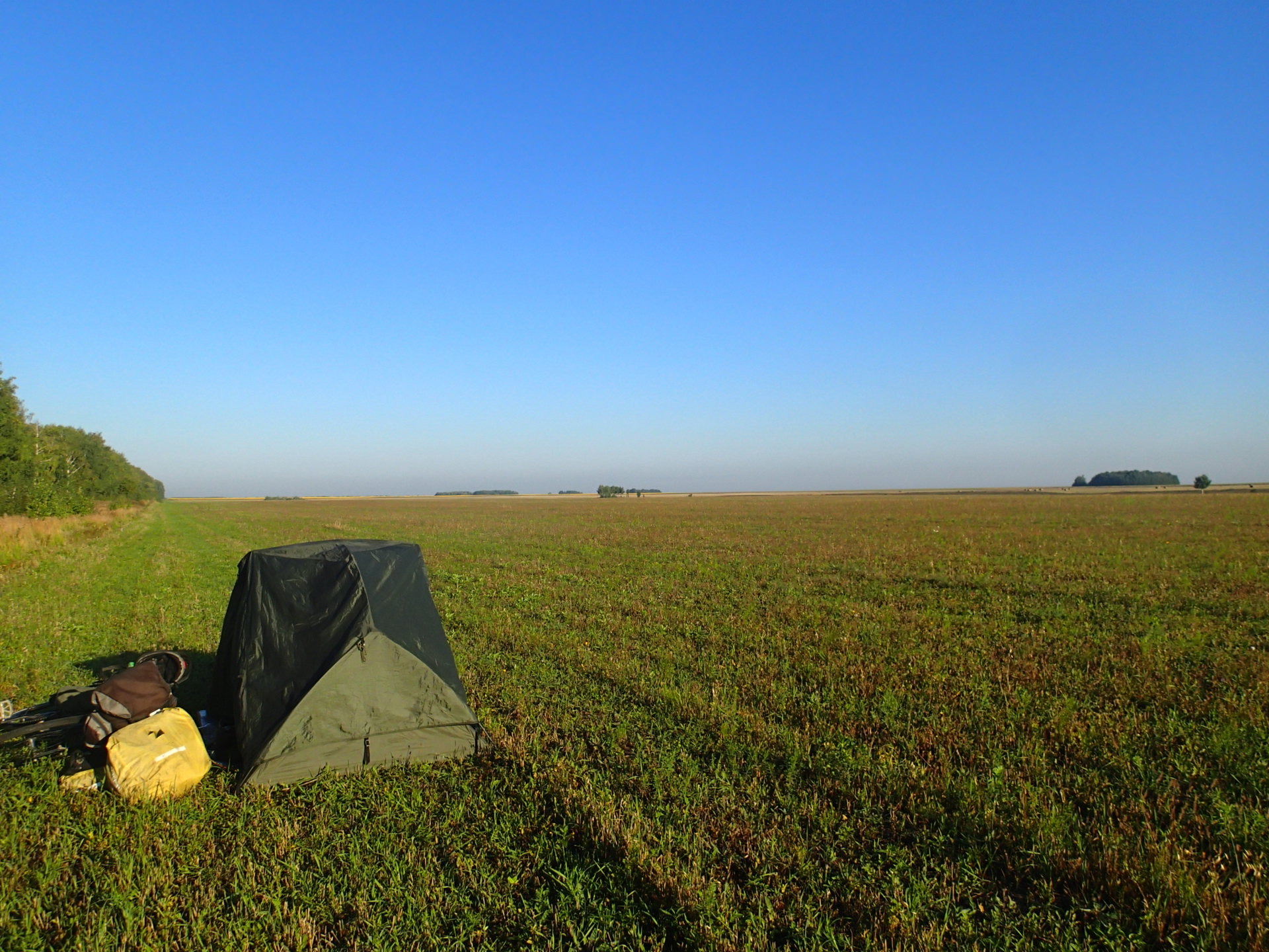 晚上走進一家有兼營旅館的餐廳想詢問住宿價格,一聽到一晚要價2100盧布,心想就算了。那時完全沒水了,想說那買兩瓶水就在附近露營吧。請店員給我兩瓶水,沒想到一瓶竟要100盧布…oh my god,這可是一般價錢的三、四倍吶!不過我還是得買啊,於是跟店員說那一瓶就好,在我掏錢時,幫我結帳的店員在和一般的同伴訕笑、聊天著,我知道他們在說我,因為我一直聽到「ㄎㄧ ㄉㄞˋ」(「中國」的俄語),言語裡帶著嘲笑式的輕蔑。心情其實很差。