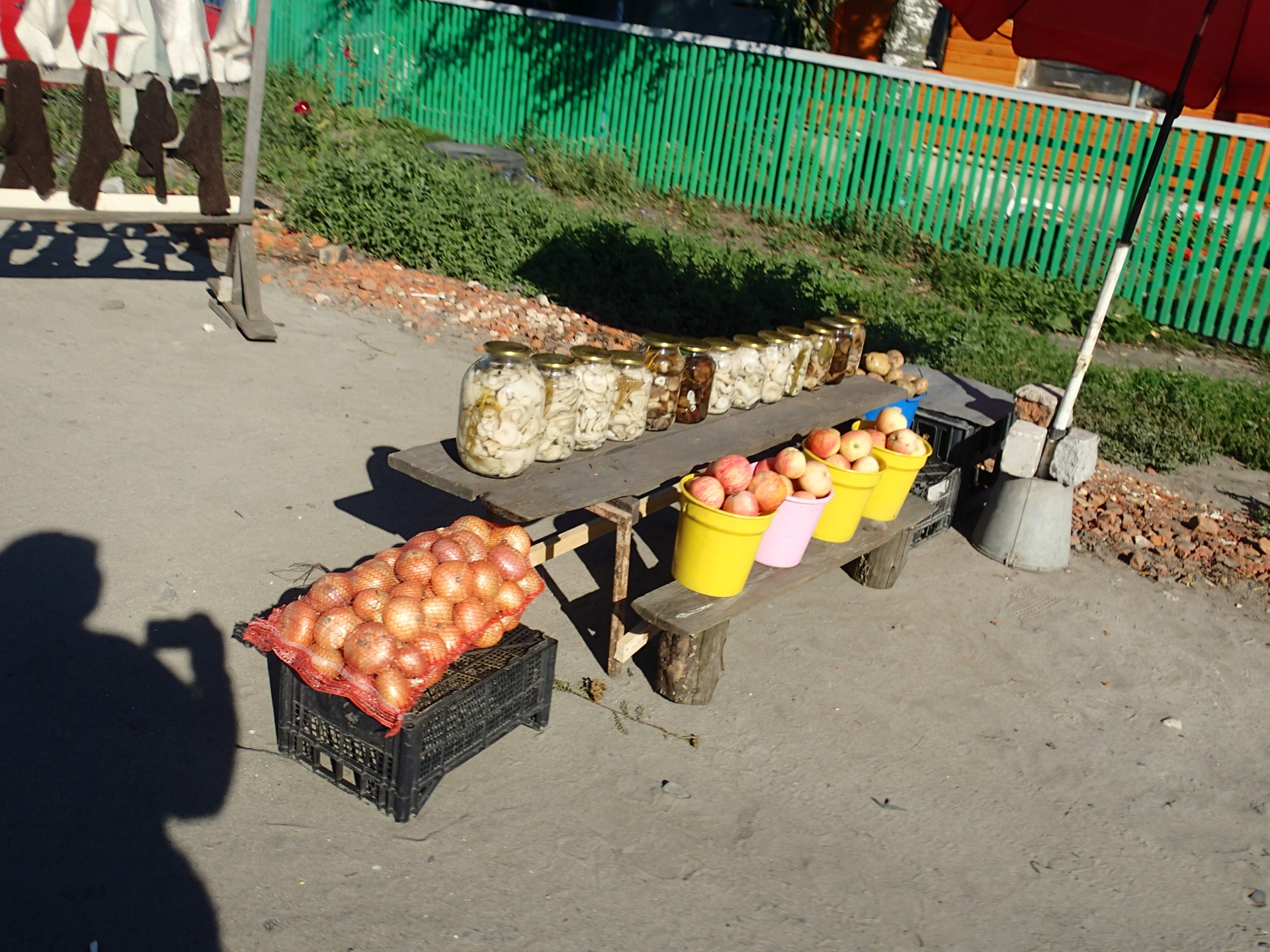 玻璃罐裡頭的是香菇喔!從進到俄羅斯到現在,馬路兩旁大部分的景色都是一片森林,時而可以看到路邊停了一輛車、車裡頭的人鑽進了森林裡去採香菇了,或者看到路邊有人在賣新鮮、大朵的香菇。這是第一次看到醃香菇呢!