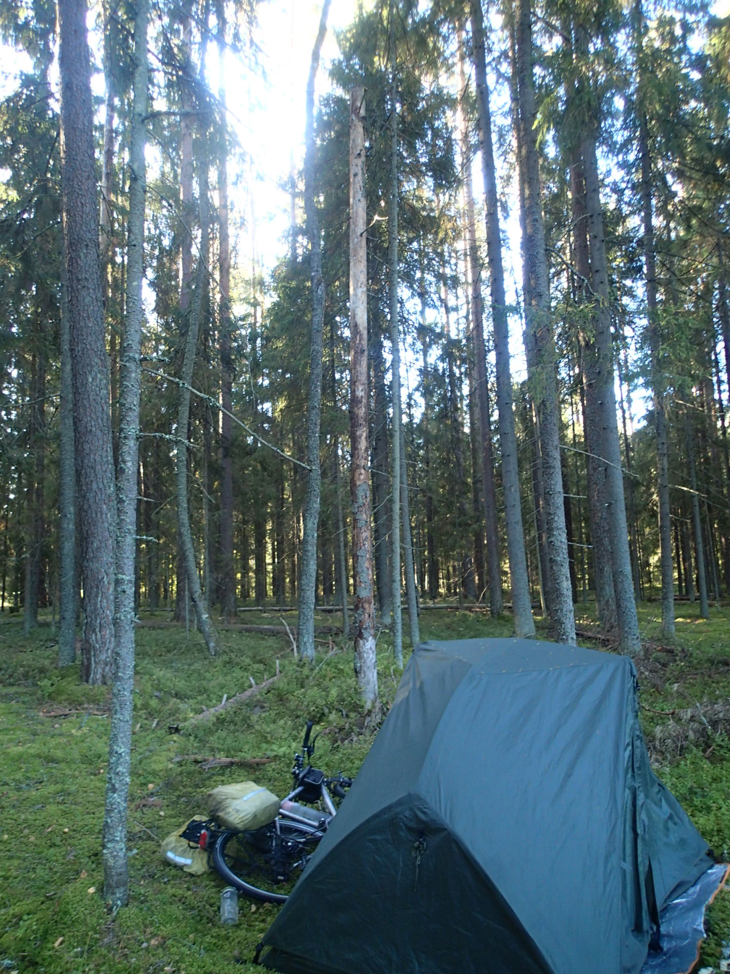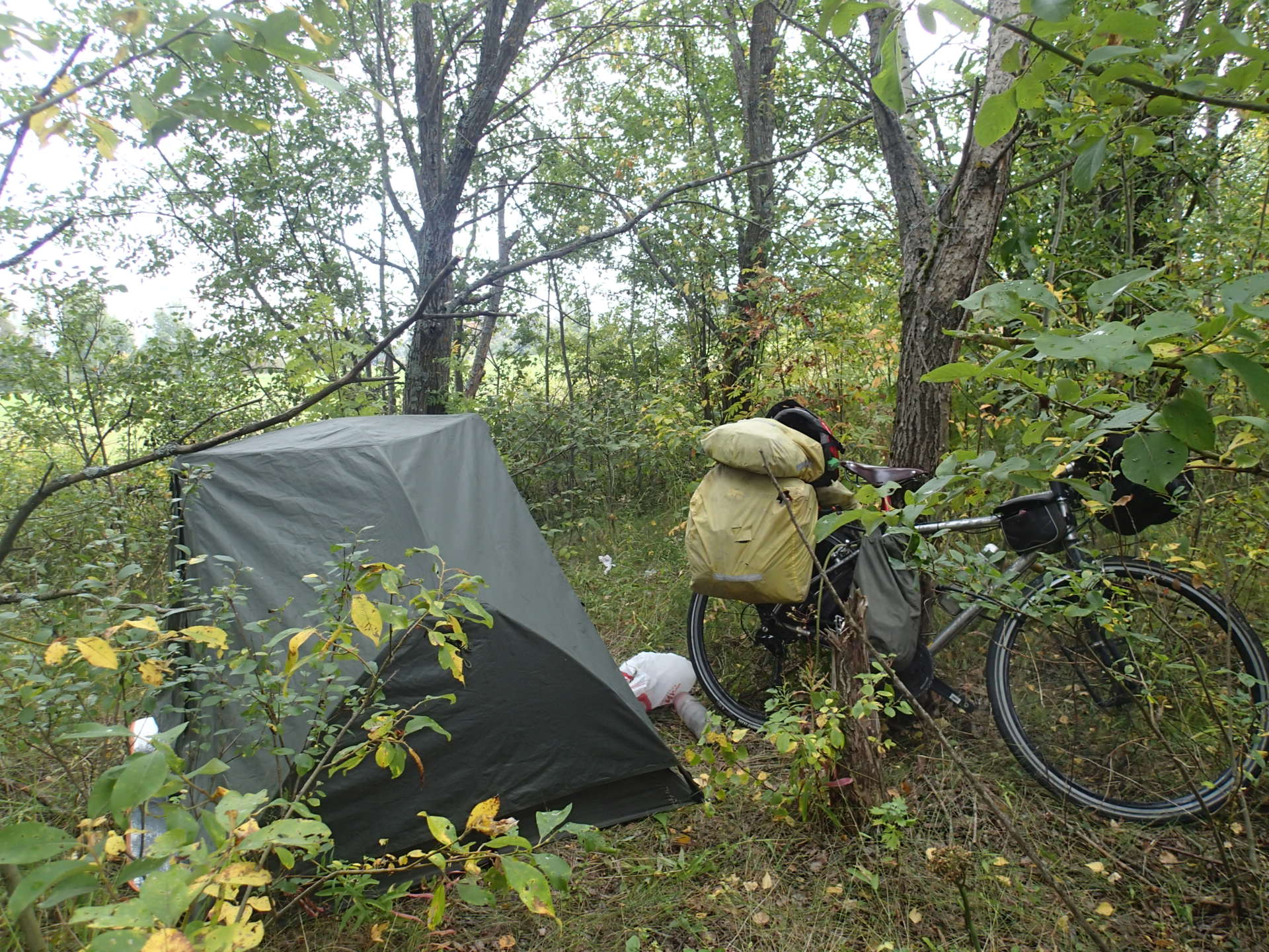120公里 麵包+茶51、Twix*2+蛋糕卷+洋芋片+餅乾、果汁186 早上六點半起床,有點是被餓醒的,昨晚只吃了個乳酪麵包。把魚罐頭打開,撕著長棍麵包,沾著吃,這裡的魚罐頭似乎都是用蕃茄(醬)調味,吃了許多種牌子,無一不是。又把豆豆罐頭開了,也是蕃茄調味,有點反胃,但還餓著,和著麵包,也下肚了,最後又拿著麵包配著剩下約五分之一的草莓果醬一齊吃完,才稍覺得可以了。 那麼早,太陽才剛出來,還冷著,是裹著睡袋吃完早餐的。吃完早餐,要起身收拾,才剛把睡袋拉開,馬上又縮了回去,好冷,窩著窩著又睡去。 醒來,看了時間,十點多了,一驚,真是貪睡了。要拆帳篷時,竟下起小雨,抬頭看看天空,整片天空擠滿了白雲,看不見一點藍,看來今天的天氣有些不妙。 下午快三點時,進了餐廳,本想吃個熱騰騰,什麼都可以的正餐,但看到櫃檯阿姨一副不想跟我這不懂俄文的人溝通,愛理不理的樣子,我也懶得比手劃腳了,於是就指了櫃檯上的麵包,再要了杯茶,就這樣吧! 出了餐廳,也是剛從餐廳出來的一對夫婦和我搭話,順著他們的問題回答著從那裡來要去那云云,而後沉默了幾秒鐘,他們拿出了一百盧布要塞給我,當然是直說no no,別這樣阿大哥,但他就是把錢塞到了我的車前包,然後趕快地坐回了駕駛座,我也只能道謝了。 往前了幾公里,是有商店的加油站,拐了進去,是想買食物,也是想把那一百盧布花掉,明天必定出境,別人給的錢還是留在他們國家消費掉吧。 買完東西要離開時,竟然嘩啦地下起大雨,只能先在這躲雨了。然後,我發現這家加油站的廁所竟然是馬桶,而不是茅坑,而且洗手檯竟然還有熱水,有些訝異與欣喜,在洗手檯旁竟還看到了插座!立馬把手機拿來充電,也用熱水刷了牙洗了臉,我想若頭也好幾天沒洗我大概也是會把頭低下洗洗的,不過現在外頭好冷,我不想幹這種事。 加油站大叔和我搭話,我想大概是來加油的車實在不多,他對於在這突然出現個騎著自行車的外國人很感興趣,他送了我蘋果,又泡了咖啡給我,還跟我說若雨還下著今晚可以在這住。 快六點時雨停了,今天到這個時候為止,不過騎了八十幾公里,雖然知道是註定得搭車了,但還是想能騎多少就盡量騎多少吧!還是決定騎到太陽快下山。 明天一早就欄車吧!早點到邊境,有什麼突發事情,才有時間再處理。