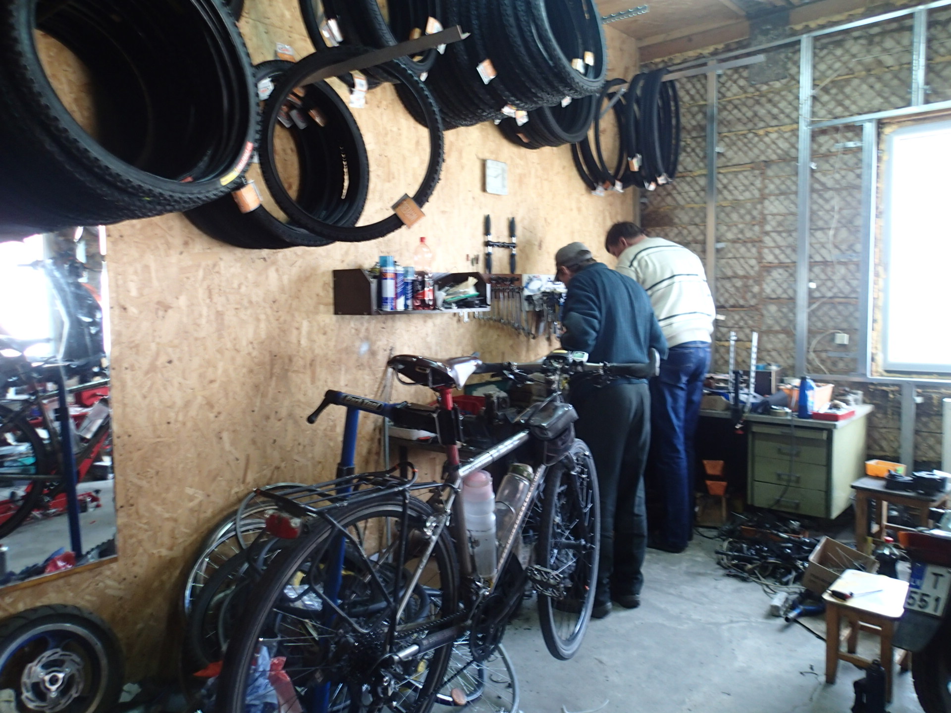 十二點多把車牽出樹林,往回騎進雷澤克內的市區,看著地圖找到了那家車店。這家車店看起來就像民宅一樣,沒有展示窗,就是在門口掛個小牌子,如果沒有昨天那運動用品店姊姊的指示,我就算經過這裡,也不會知道這兒可以修車。