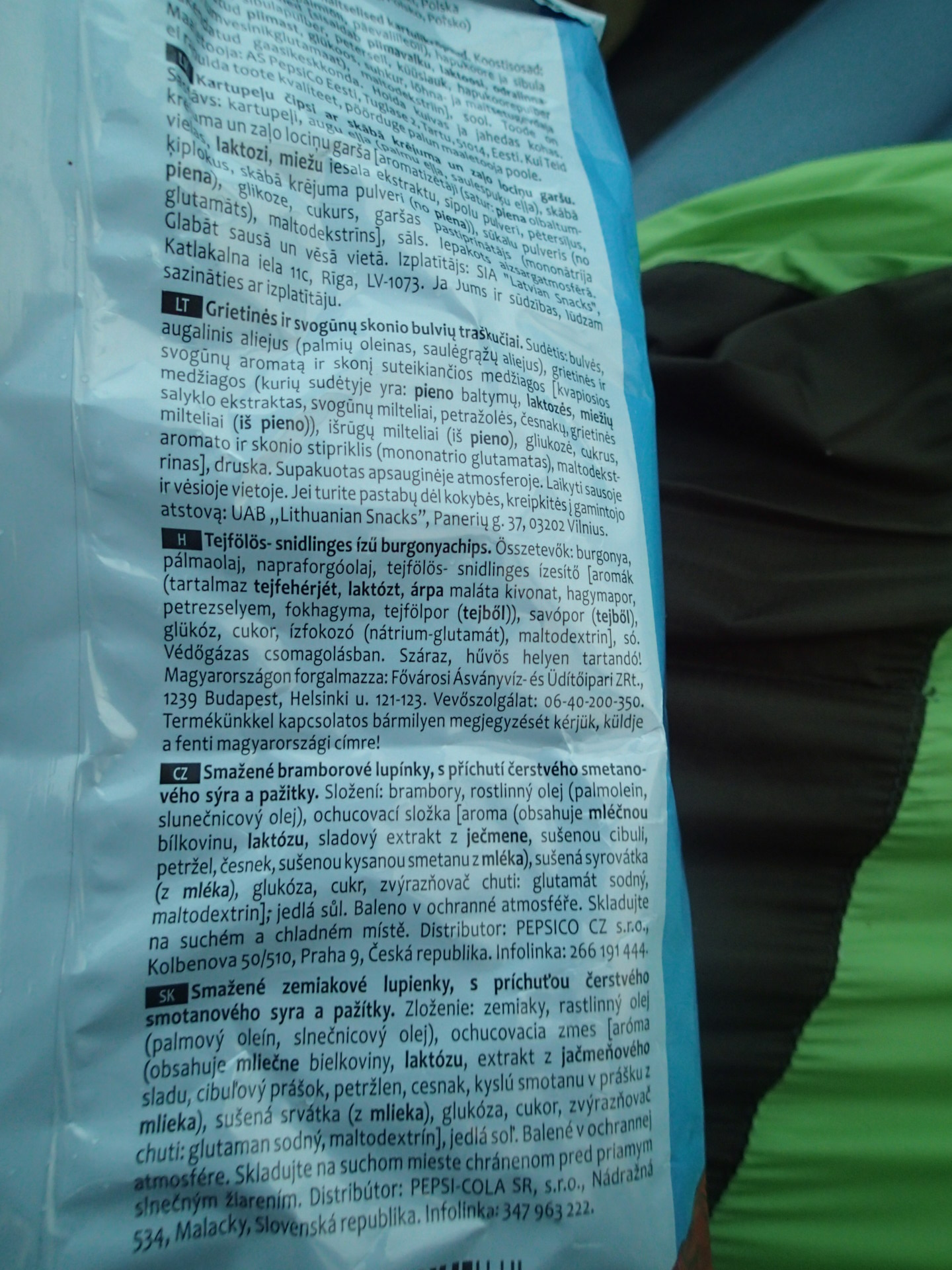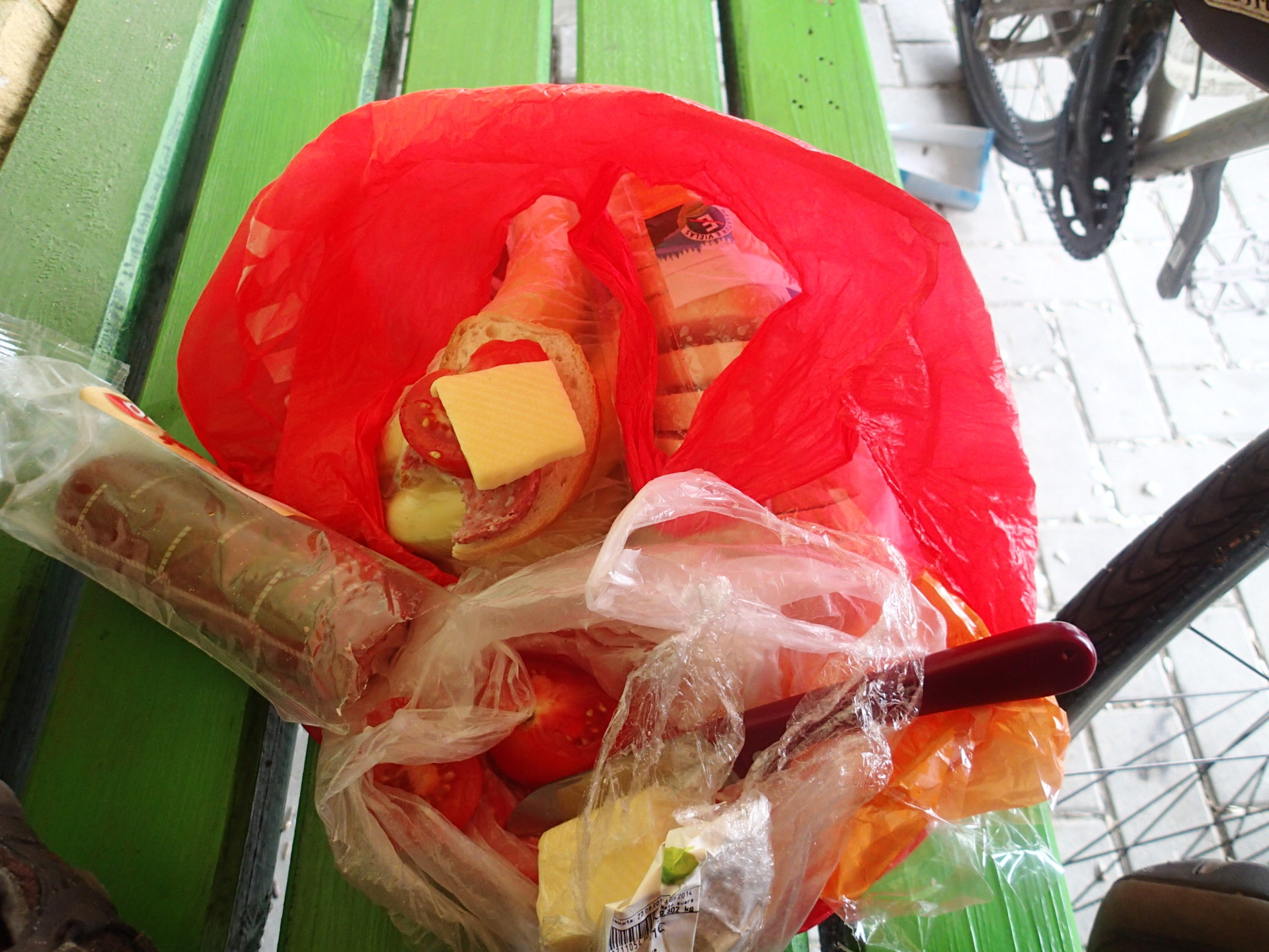 下午五點時進了Psnavezys市區,本想只是去超市裡上個廁所,但看到超市裡琳瑯滿目的東西還是被吸了過去。知道立陶宛還未進入歐元區,一直還在猶豫到底要不要在這領錢,我估計自己差不多最多三天就會穿越立陶宛進到波蘭了,在這裡領了錢的話,到時出了立陶宛又會有一堆叮叮噹噹不能用的零錢。還抱持著觀望的心態,那還是先進超市再說吧。一進超市,發現每樣商品的標價牌上同時都標有立陶宛立特與歐元的價格!所以,現在是這兩種貨幣同時在立陶宛流通?抱著試試看的心情,於是我拿了包麵包和樂事便到櫃台、拿出歐元要結帳。結果果然不行,現在歐元尚未開始流通。正當我要和櫃檯姊姊說那我先去領錢再來買時,他比了比櫃檯前方的信用卡機器,對吼,還可以用信用卡刷卡。