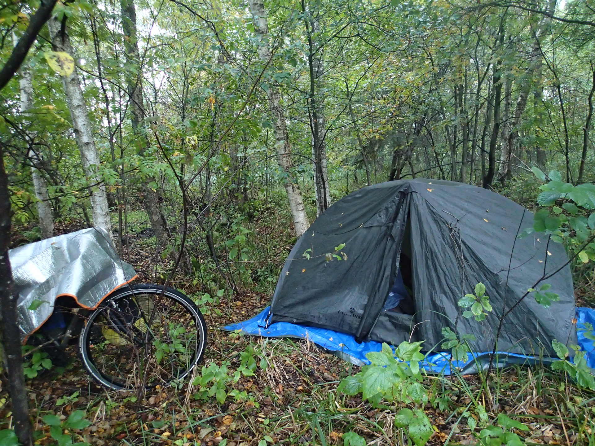 早上七點起來,外頭還是有陣陣雨滴滴落在外帳的聲音,帳篷內不意外地也積了點水。不想把時間耗在著等內外帳乾,況且也沒太陽,雲層厚得呢!用抹布把內帳積的小水漥給擦了,也就捲起來了。